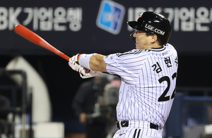 [스포티비뉴스=잠실, 곽혜미 기자] 2025 신한 SOL Bank KBO리그 LG 트윈스와 NC 다이노스의 경기가 1일 오후 서울 송파구 잠실야구장에서 열렸다. 1회말 2사 2루 상황에서 LG 김현수가 선취 1타점 적시타를 날리고 있다.