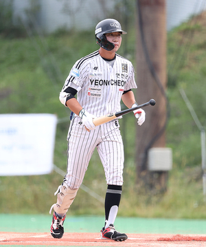 [스포티비뉴스=곤지암, 곽혜미 기자] '2025 KBSA리그' 연천 미라클과 화성 코리요의 결승 2차전이 2일 오후 경기도 광주시 곤지암읍 팀업캠퍼스 야구장에서 열렸다. 3회말 선두타자로 나선 연천 미라클 황상준이 볼넷으로 출루하고 있다.