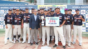 [스포티비뉴스=곤지암, 곽혜미 기자] '2025 KBSA리그' 연천 미라클과 화성 코리요의 결승 2차전이 2일 오후 경기도 광주시 곤지암읍 팀업캠퍼스 야구장에서 열렸다. 준우승을 거둔 화성 코리요가 기념 촬영을 하고 있다.