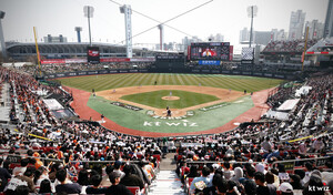 수원 kt위즈파크에서는 한화 이글스와 kt 위즈의 경기가 정상적으로 막을 올릴 것으로 보인다. 대형 방수포가 깔려 있었지만 지금은 경기 개시를 위해 그라운드 정비가 다 끝난 상태다.