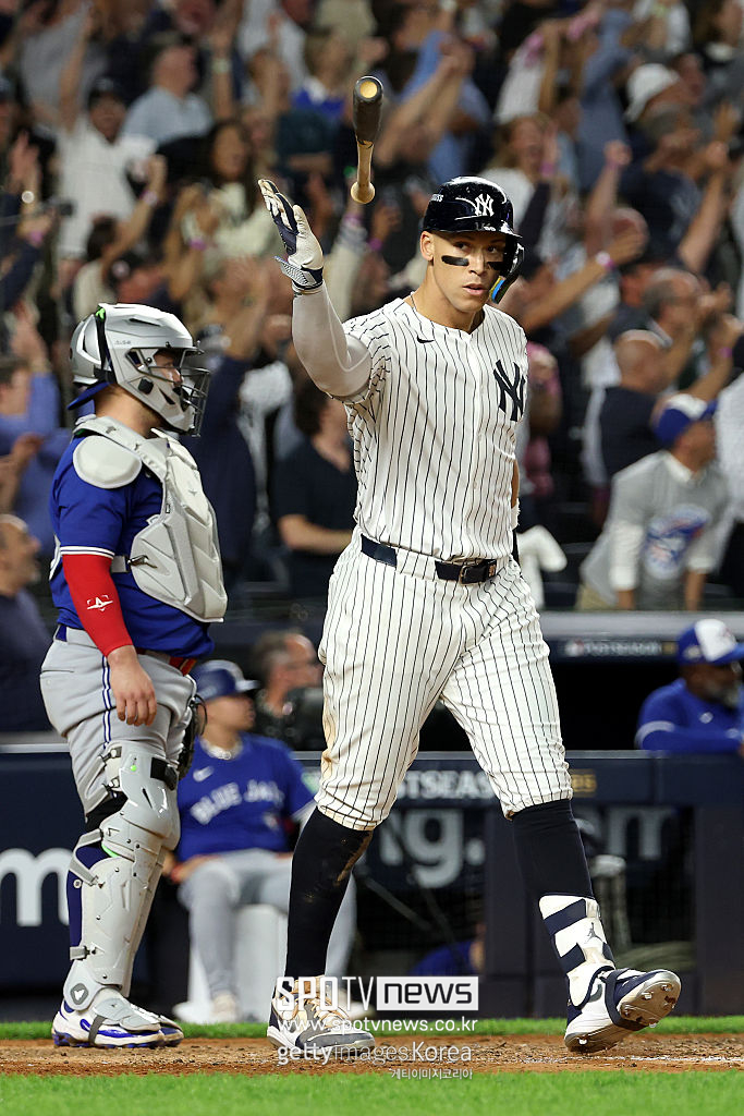저지의 홈런으로 3-6이었던 점수가 6-6이 됐다. 1-6에서 시작된 추격의 완성이었다. 8일(한국시간) 미국 뉴욕주 브롱스 양키스타디움에서 열린 2025 메이저리그 아메리칸리그 디비전시리즈 토론토 블루제이스와 3차전에서 양키스는 저지의 동점 쓰리런과 재즈 치좀 주니어의 역전 홈런에 힘입어 9-6으로 역전승을 거뒀다.