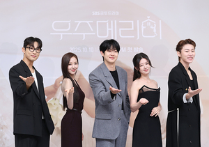 [스포티비뉴스=서울, 곽혜미 기자] SBS 새 금토드라마 '우주메리미' 제작발표회가 10일 오후 서울 양천구 목동 SBS 사옥에서 진행됐다. 배우 배나라, 신슬기, 최우식, 정소민, 서범준이 포즈를 취하고 있다.