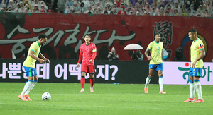 [스포티비뉴스=서울월드컵경기장, 곽혜미 기자] 대한민국과 브라질의 평가전이 10일 오후 서울월드컵경기장에서 열렸다. 후반전 손흥민이 안 풀리는 경기에 아쉬워하고 있다.