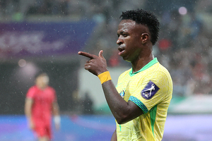 [스포티비뉴스=서울월드컵경기장, 곽혜미 기자] 대한민국과 브라질의 평가전이 10일 오후 서울월드컵경기장에서 열렸다. 후반전 브라질 비니시우스가 골을 넣고 세리머니를 하고 있다.