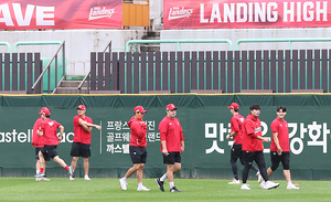 [스포티비뉴스=인천, 곽혜미 기자] 2025 신한 SOL뱅크 KBO 포스트시즌 SSG와 삼성의 준플레이오프 2차전이 11일 오후 인천 SSG랜더스필드에서 열린다. SSG 선수들이 훈련을 하고 있다.