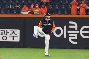 [스포티비뉴스=대전, 곽혜미 기자] 2025 신한 SOL뱅크 KBO 포스트시즌 한화와 삼성의 플레이오프 1차전이 17일 오후 대전 한화생명 볼파크에서 열린다. 한화 선발로 예정된 폰세가 몸을 풀고 있다.
