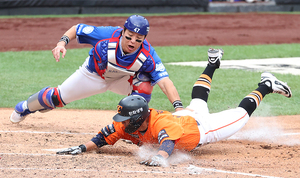 [스포티비뉴스=대전, 곽혜미 기자] 2025 신한 SOL뱅크 KBO 포스트시즌 한화와 삼성의 플레이오프 2차전이 18일 오후 대전 한화생명 볼파크에서 열렸다. 2회말 2사 2,3루 한화 손아섭의 안타 때 3루 주자 김태연이 득점에 성공하고 있다.