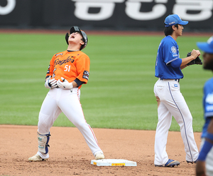 [스포티비뉴스=대전, 곽혜미 기자] 2025 신한 SOL뱅크 KBO 포스트시즌 한화와 삼성의 플레이오프 2차전이 18일 오후 대전 한화생명 볼파크에서 열렸다. 2회말 2사 만루 상황에서 한화 문현빈이 3타점 역전 적시타를 날린 후 세리머니를 하고 있다.