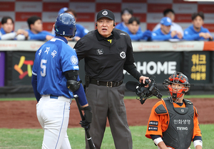 ▲ 박기택 주심 구자욱 ⓒ곽혜미 기자