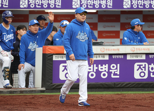 [스포티비뉴스=대전, 곽혜미 기자] 2025 신한 SOL뱅크 KBO 포스트시즌 한화와 삼성의 플레이오프 2차전이 18일 오후 대전 한화생명 볼파크에서 열렸다. 3회초 무사 1,3루 상황에서 삼성 구자욱이 한화 선발 폰세의 인터벌이 너무 길다며 항의했다. 삼성 박진만 감독이 그라운드로 나오고 있다.