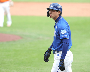 [스포티비뉴스=대전, 곽혜미 기자] 2025 신한 SOL뱅크 KBO 포스트시즌 한화와 삼성의 플레이오프 2차전이 18일 오후 대전 한화생명 볼파크에서 열렸다. 3회초 무사 1,3루 삼성 구자욱 희생플라이를 날린 후 한화 더그아웃을 바라보며 폰세 인터벌에 대해 다시 한번 얘기하고 있다.