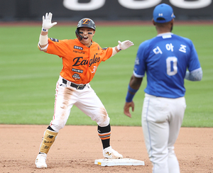 [스포티비뉴스=대전, 곽혜미 기자] 2025 신한 SOL뱅크 KBO 포스트시즌 한화와 삼성의 플레이오프 1차전이 18일 오후 대전 한화생명 볼파크에서 열렸다. 6회말 무사 2루 상황에서 한화 손아섭이 1타점 동점 적시타를 날린 후 포효하고 있다.