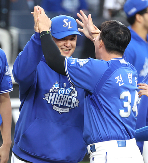 [스포티비뉴스=대전, 곽혜미 기자] 2025 신한 SOL뱅크 KBO 포스트시즌 한화와 삼성의 플레이오프 2차전이 19일 오후 대전 한화생명 볼파크에서 열렸다. 7-3으로 승리한 삼성 최원태가 기뻐하고 있다.