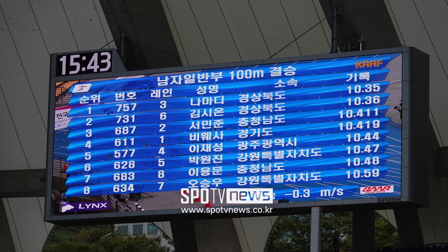 3위는 서민준(서천군청) 10초 411, 4위는 비웨사 다니엘 가사마 (안산시청) 10초 419 였다.