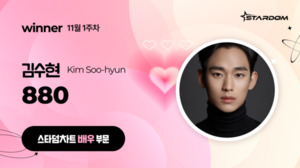 김수현은 11월 1주차 통합(집계기간 11월 3일~11월 9일) '스타덤 차트' 배우 부문 주간랭킹에서 1위를 차지했다. 10월 3주차에서 1위 자리를 되찾은 후 4주 연속 정상 등극이다.