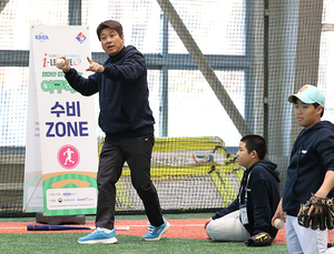 [스포티비뉴스=강릉, 곽혜미 기자] 2025 야구 유청소년클럽리그(i-league) '엄마와 함께 배우는 야구학교'가 16일 강원도 강릉시 초당동 강릉고등학교에서 열렸다. 신명철 코치가 지도를 하고 있다.