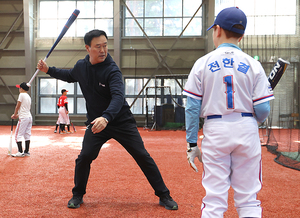 [스포티비뉴스=강릉, 곽혜미 기자] 2025 야구 유청소년클럽리그(i-league) '엄마와 함께 배우는 야구학교'가 16일 강원도 강릉시 초당동 강릉고등학교에서 열렸다. 장종훈 코치가 타격 지도를 하구 있다.