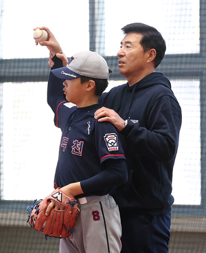 [스포티비뉴스=강릉, 곽혜미 기자] 2025 야구 유청소년클럽리그(i-league) '엄마와 함께 배우는 야구학교'가 16일 강원도 강릉시 초당동 강릉고등학교에서 열렸다. 서효인 코치가 지도를 하고 있다.