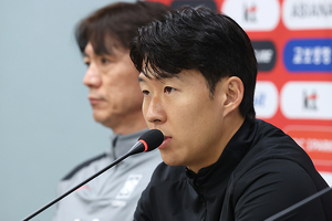 [스포티비뉴스=서울월드컵경기장, 곽혜미 기자] 축구대표팀 가나전 공식 기자회견이 17일 오후 서울월드컵경기장에서 열렸다. 손흥민이 질문에 답하고 있다.