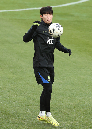 [스포티비뉴스=서울월드컵경기장, 곽혜미 기자] 축구대표팀 공식 훈련이 17일 오후 서울월드컵경기장에서 열렸다. 배준호가 훈련을 하고 있다.