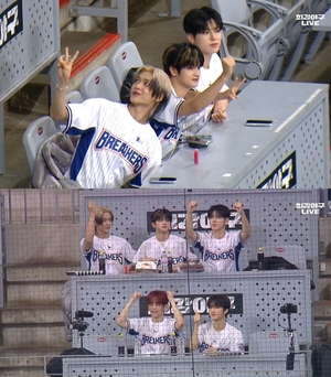 [스포티비뉴스=김원겸 기자]큐브엔터테인먼트 신인 보이그룹 나우즈(NOWZ)가 야구장에서 포착돼 화제다.