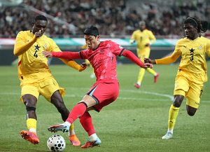 [스포티비뉴스=서울월드컵경기장, 곽혜미 기자] 한국과 가나의 친선 경기가 18일 오후 서울월드컵경기장에서 열렸다. 황희찬이 슈팅을 시도하고 있다.