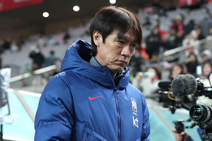 [스포티비뉴스=서울월드컵경기장, 곽혜미 기자] 한국과 가나의 친선 경기가 18일 오후 서울월드컵경기장에서 열렸다. 홍명보 감독이 그라운드로 나서고 있다.