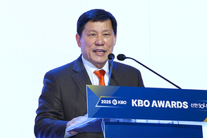 [스포티비뉴스=잠실, 곽혜미 기자] 2025 신한은행 SOL뱅크 KBO 시상식이 24일 오후 서울 송파구 잠실 롯데호텔 월드에서 열렸다. 허구연 총재가 인사말을 하고 있다.