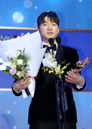 [스포티비뉴스=잠실, 곽혜미 기자] 2025 신한은행 SOL뱅크 KBO 시상식이 24일 오후 서울 송파구 잠실 롯데호텔 월드에서 열렸다. 도루상을 수상한 LG 박해민이 소감을 말하고 있다.