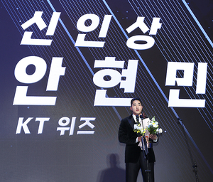 [스포티비뉴스=잠실, 곽혜미 기자] 2025 신한은행 SOL뱅크 KBO 시상식이 24일 오후 서울 송파구 잠실 롯데호텔 월드에서 열렸다. 신인상을 수상한 KT 안현민이 소감을 말하고 있다.