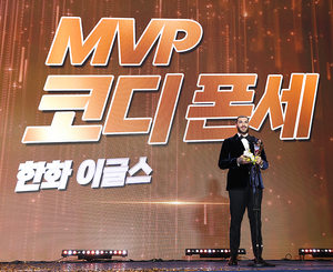 [스포티비뉴스=잠실, 곽혜미 기자] 2025 신한은행 SOL뱅크 KBO 시상식이 24일 오후 서울 송파구 잠실 롯데호텔 월드에서 열렸다. MVP에 선정된 한화 폰세가 소감을 말하고 있다.